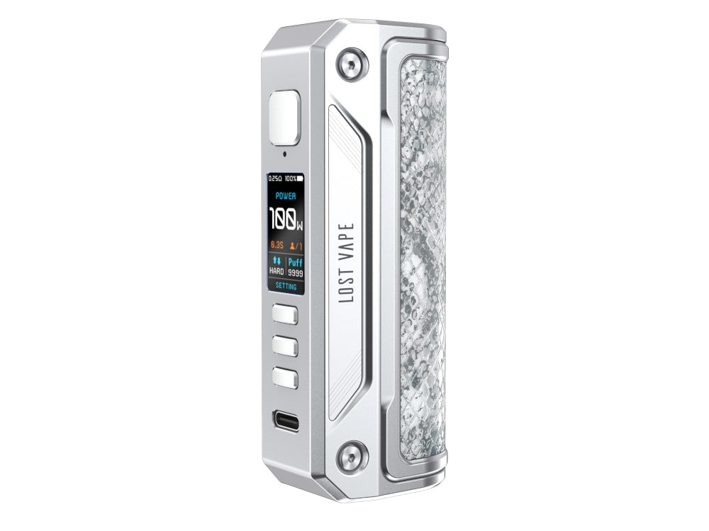 Der von Lost Vape hergestellte Thelema Solo Akkuträger steht Ihnen in verschiedenen Farben zur Auswahl. Über eine 18650er oder 21700er Akkuzelle (kein Bestandteil vom Lieferumfang) können Sie den Thelema Solo in Betrieb nehmen. In Kombination mit der Akkuzelle erreicht der Thelema Solo eine Ausgangsleistung von maximal 100 Watt. Der Akkuträger unterstützt das Dampfen in den Ausgabemodi: VW und TC. Über die Feuertaste und den drei Funktionstasten können Sie zwischen den verschiedene Modi wechseln bzw. individuelle Einstellungen vornehmen. Die von Ihnen vorgenommenen Einstellungen sowie alle relevanten Parameter werden Ihnen auf dem 0,96 Zoll großen TFT-Farb-Display dargestellt. Der Lost Vape Thelema Solo 100 Watt verfügt über ein 510er Gewinde, somit kann dieser mit einer Vielzahl an Verdampfern kombiniert werden.
